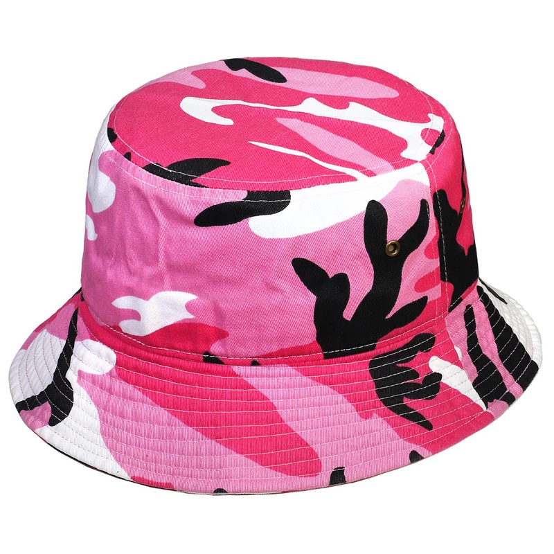 Men Women Unisex Cotton Bucket Hat 100% Cotton Packable for Travel Fishing Hunting Summer Camp (L/XL, Pink Camo)
