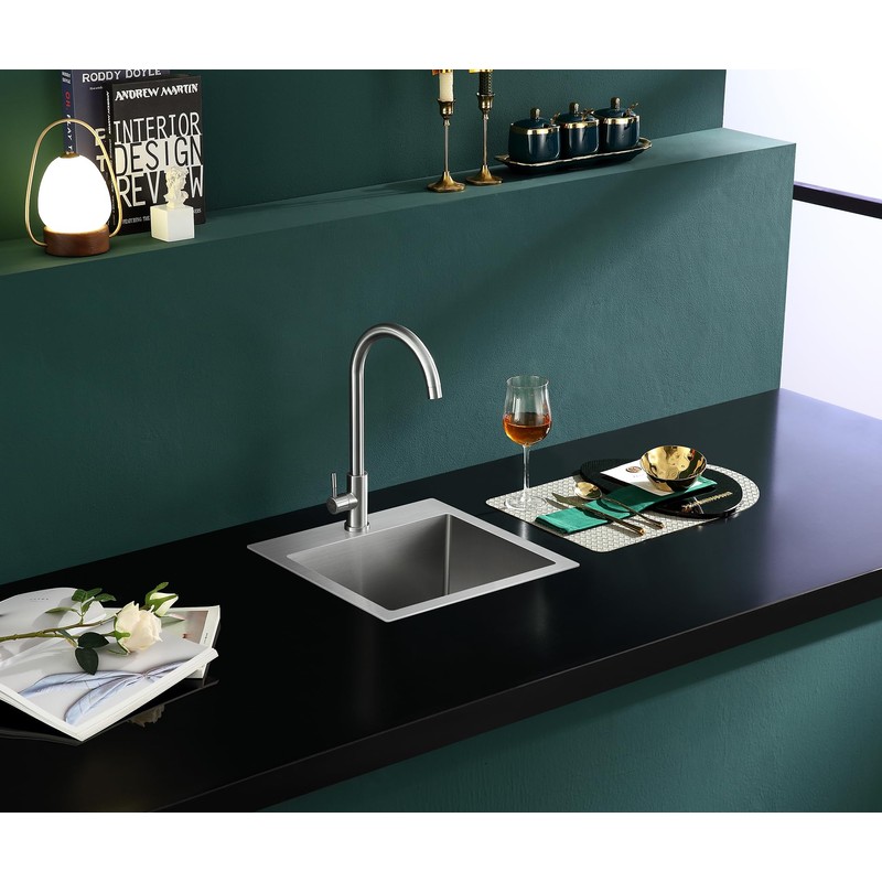 MENATT 18 inch Kitchen Sink Drop-In Brushed,304 Stainless Steel Handmade Single Faucet Hole Single Bowl Small Topmount Kitchen Bar Sink, D18" x W18" x H9"