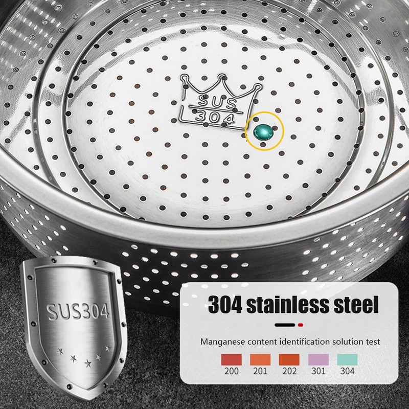 The stainless steel steamer is made of 304 stainless steel, which is durable, high pressure resistant and rust-proof.