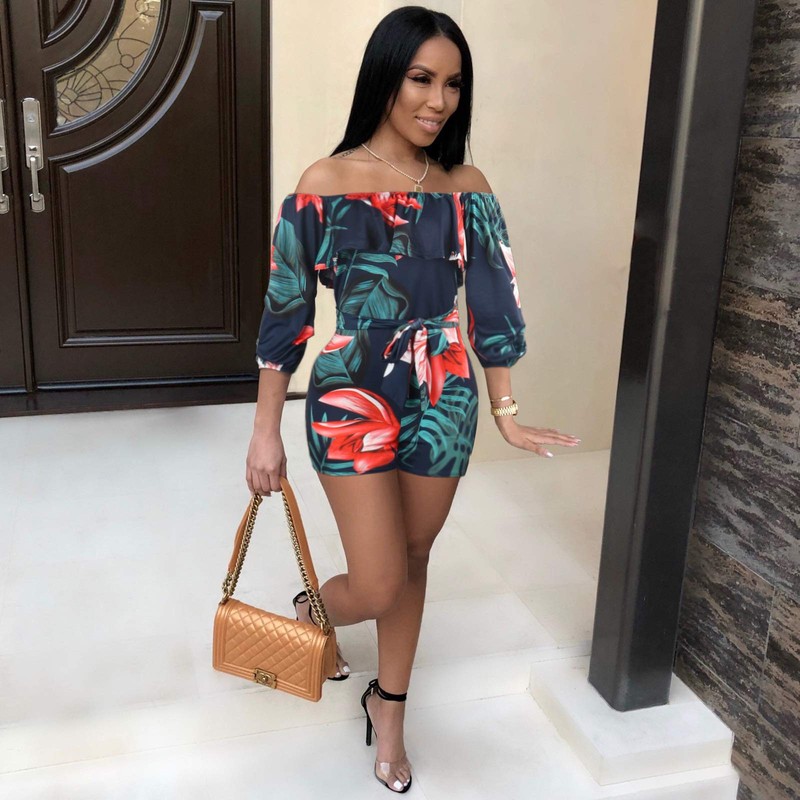 - Style2/Style3 Feature:Sexy off the shoulder/Sexy wrap v neck,Floral print/Rainbow Stripes,Pull Sleeve/Short Sleeve,Tie waist design,Strapless Short jumpsuit romper,Ruffle shorts outfit