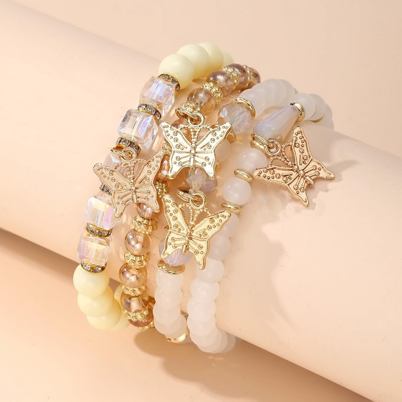 MengPa Butterfly Beaded Bracelets for Women Trendy Stacks Boho Bead Bracelet Pack Gold Friendship Jewelry(White Coffee Black Blue Pink Green) 6PCS