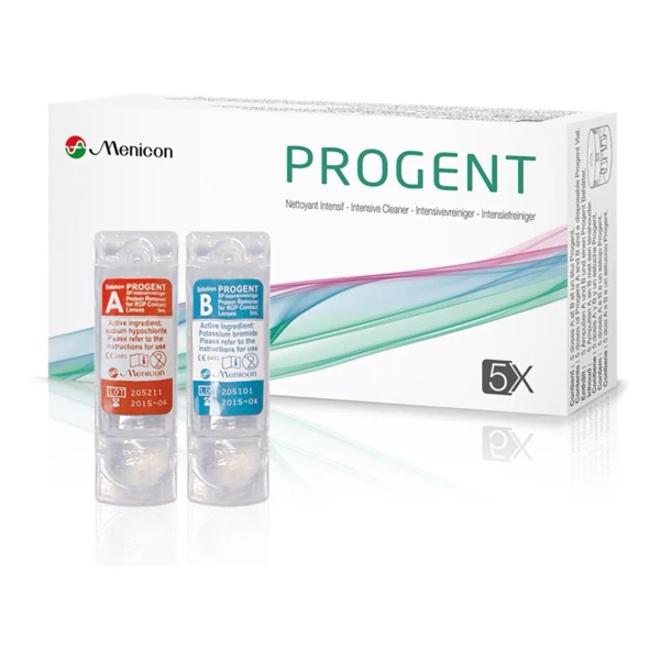 Progent de Menicon - Limpiador Intensivo, 5 Dosis' es un limpiador intensivo diseñado para lentes de contacto rígidos permeables al gas y lentes esclerales. En tan solo 30 minutos, este producto actúa sobre bacterias, hongos, virus y amibas, además de desproteinizar.