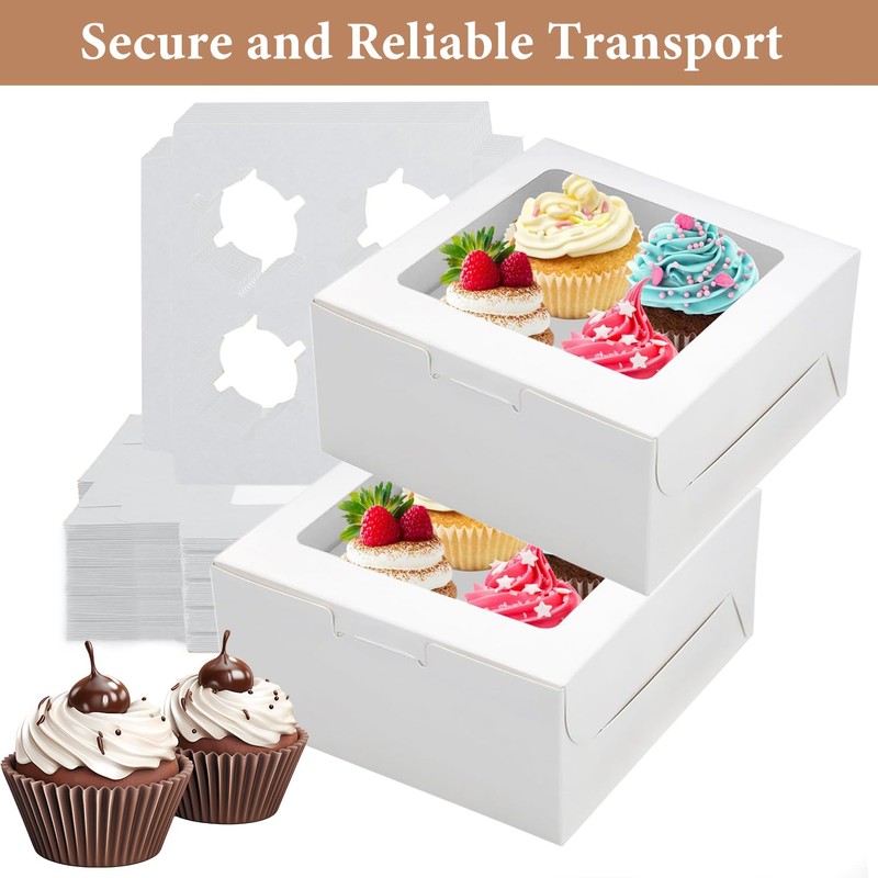 Durable Material: Made from high-quality Paper and Polyvinyl Chloride (PVC), these cupcake boxes are sturdy and reliable, ensuring your baked goods stay fresh and intact.
