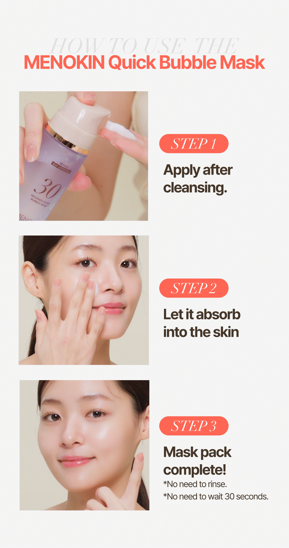 1. Apply after cleansing 2. Let absorb 3. Mask pack complete! No rinsing required.