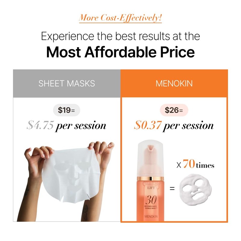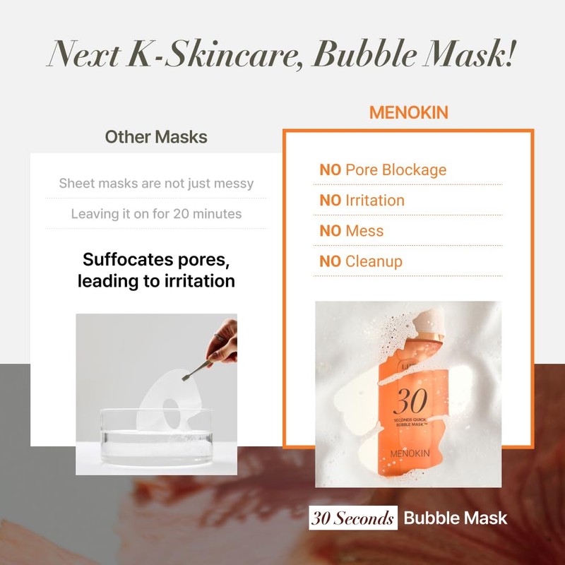 • Time-Saving Minimal Skincare with Menokin: Achieve the glow of a 20-minute sheet mask in just 30 seconds! This innovative bubble serum provides deep hydration and revitalizes dull, tired skin for a refreshed and radiant complexion.
