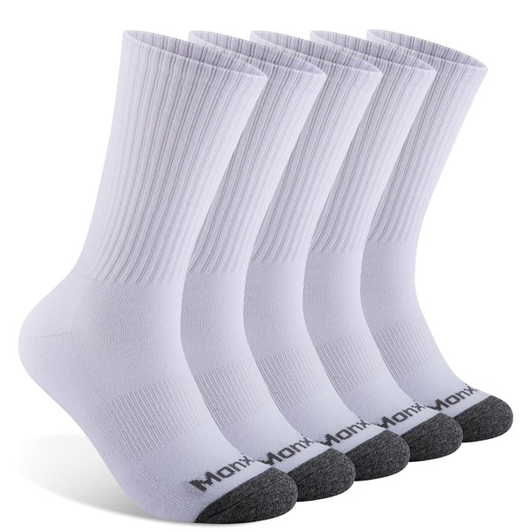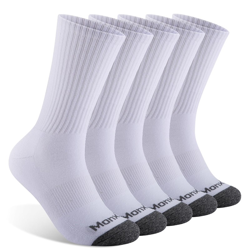 Mens 100% Cotton Moisture Wicking Cushioned Crew Socks, Athletic Performance Work socks