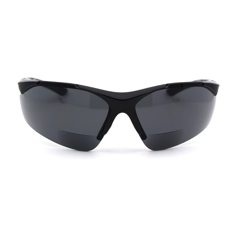Mens All Black Sport Baseball Half Rim Warp Around Bi-focal Reading Sunglasses 1.0