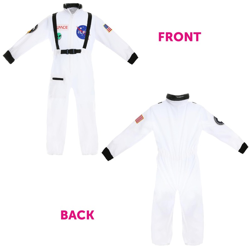 - COSTUME INCLUDES: Your Adults Astronaut Costume includes a White Astronaut Jumpsuit, with space station badges sewn in, and a black clip buckle to tighten and secure the costume at the waist to complete your costume!