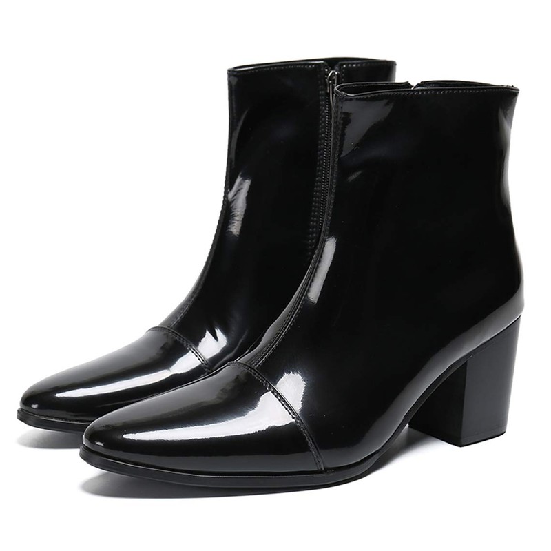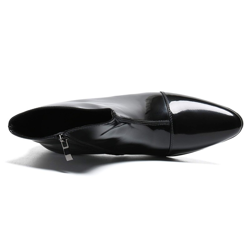 Mens Boots Casual Patent Leather Chelsea Dress Boots Zipper on Side Mid Calf Boots for Men Black 6