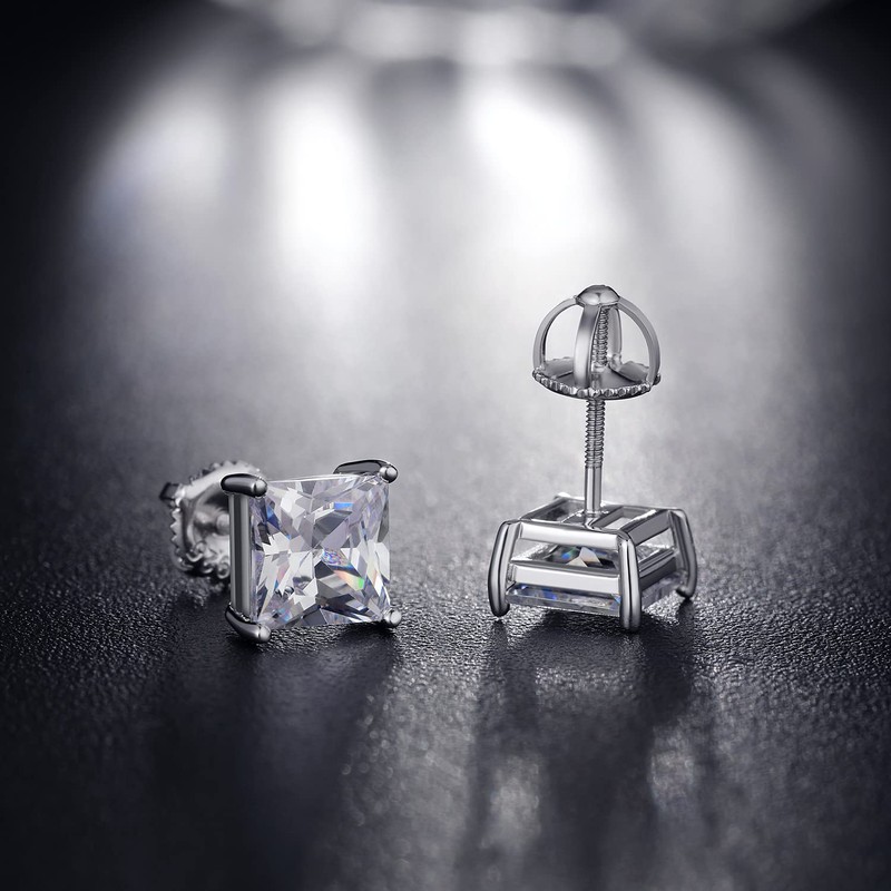 Mens Earrings Stud Square Stud Earrings Screw Back Square Cubic Zirconia Earrings Princess Cut CZ Earrings Fake Square Diamond Earrings Silver Princess Cut Cubic Zirconia Earrings Square Earrings 7mm