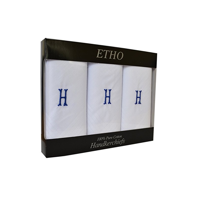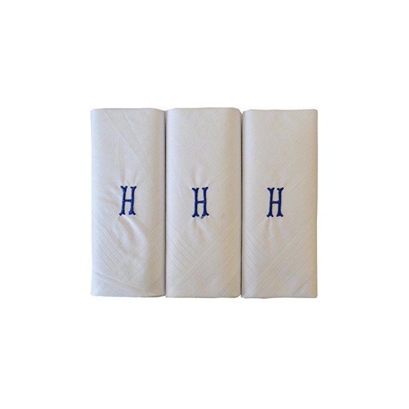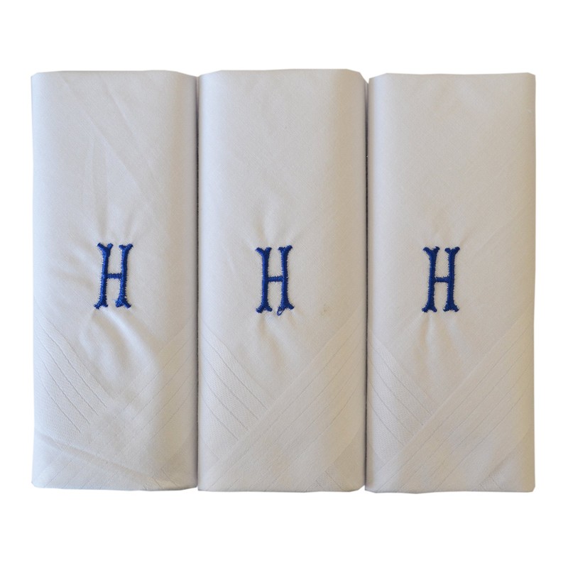Mens/Gentlemens 3 Pack Plain White Handkerchiefs With 1 Letter Name Initials, H