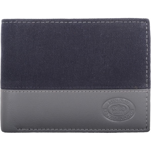 Mens Gents Contrast Genuine Leather Bi Fold Money Holder Wallet. One Size.Bi Fold Compartment with Flap ID Holder and Credit Card Slots. Note Compartment. Genuine Leather with Canvas Material in Contrasting Colours.