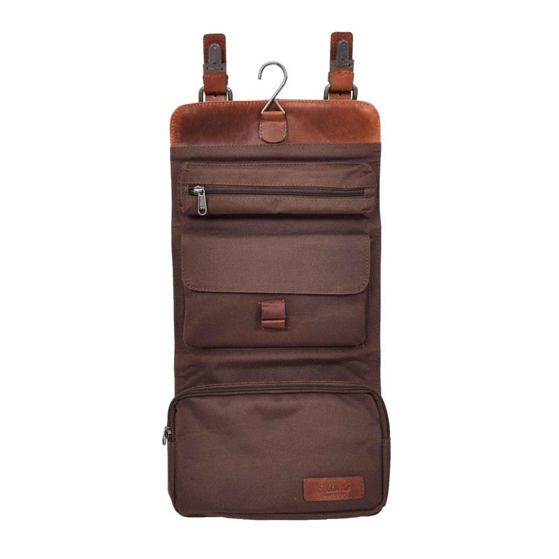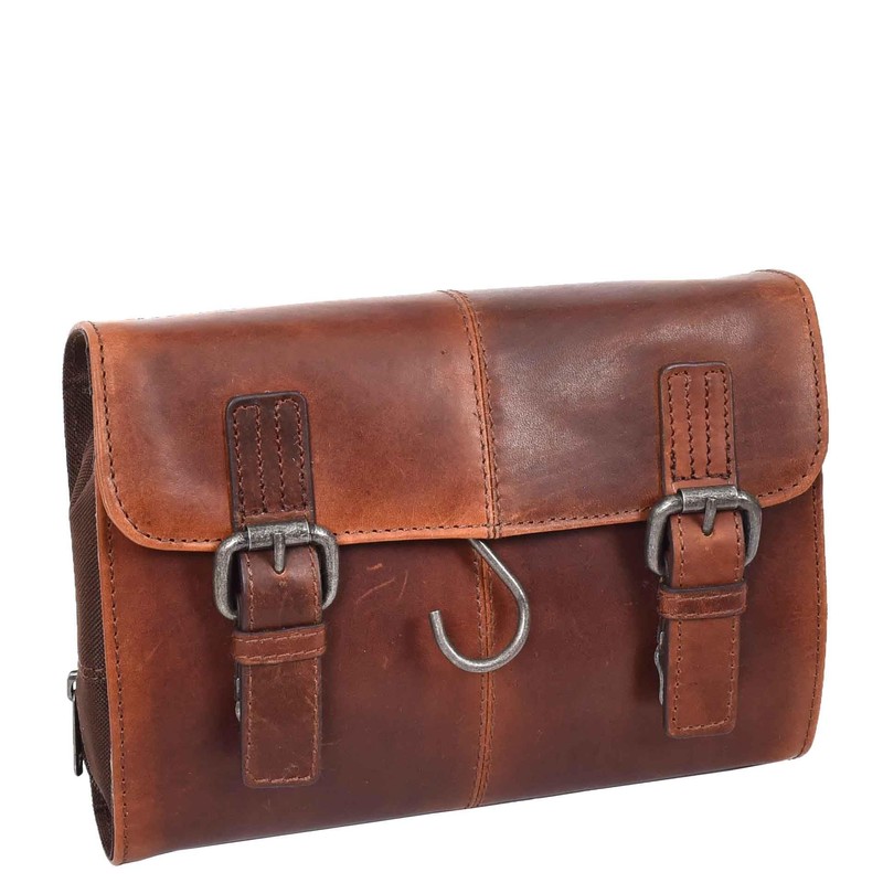 Mens Handmade Real Leather Hanging Toiletry Bag Travel Overnight Wash Bag ScrubSack (Tan)