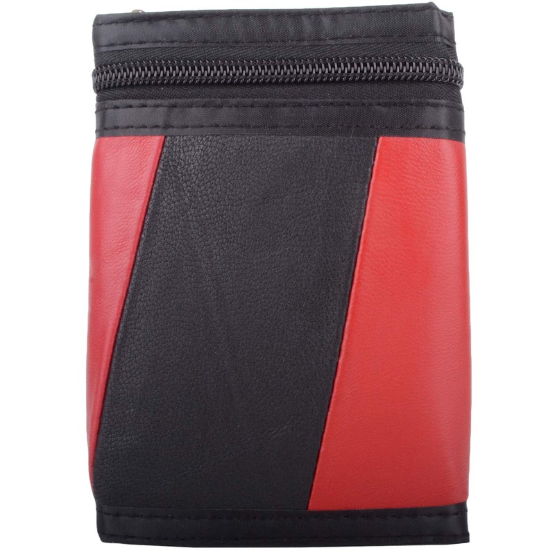 Mens Leather Tri-Fold Wallet/Coin Holder with Key Chain - Red/Black