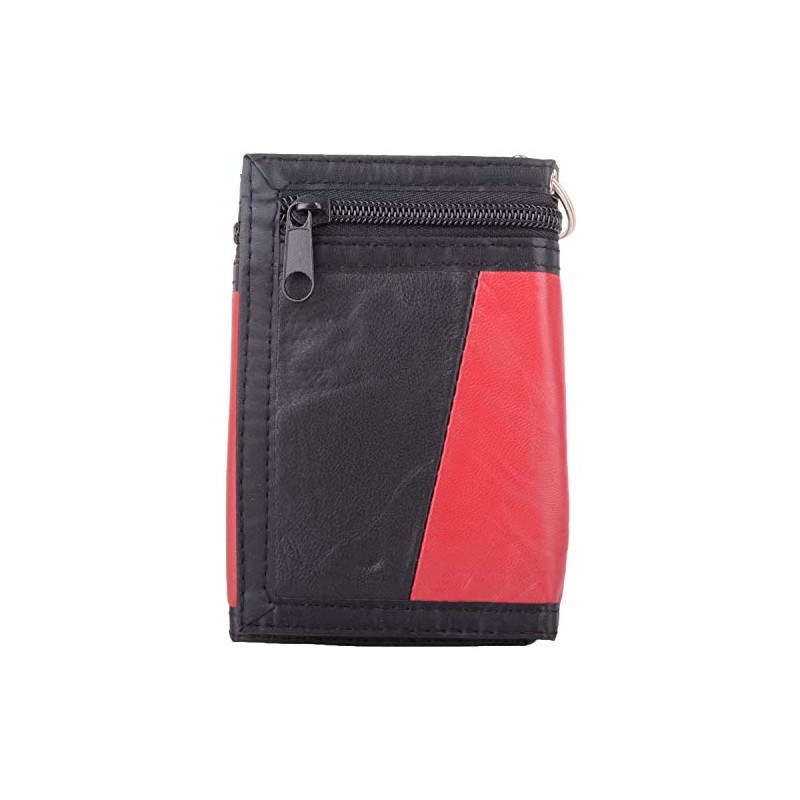 Mens Leather Tri-Fold Wallet/Coin Holder with Key Chain - Red/Black