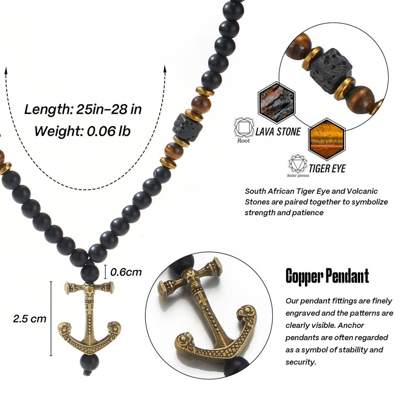 - Innovative design: This men's long beaded necklace features a classic beaded design, intricately interspersed with gold or silver metal accents, paired with metal pendants in shapes like anchors, hearts, or crosses, it disrupts the monotony of a single bead strand, adding depth and visual impact to the black bead necklace, making it more unique.