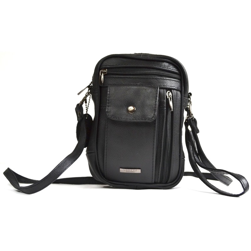 - Mens Lorenz Man Bag Leather Black With Wrist & Shoulder Strap - Black