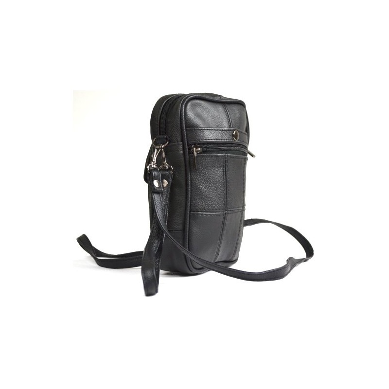 - Mens Lorenz Man Bag Leather Black With Wrist & Shoulder Strap - Black