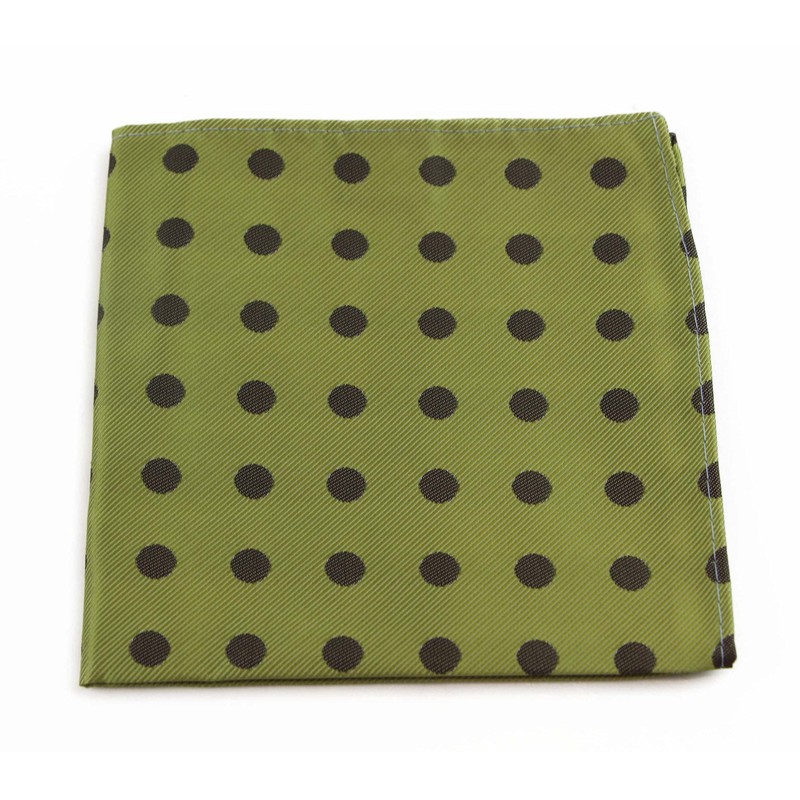 Mens Olive Green & Brown Polka Dot Silk Pocket Square Olive Green and Brown