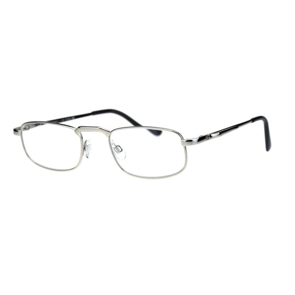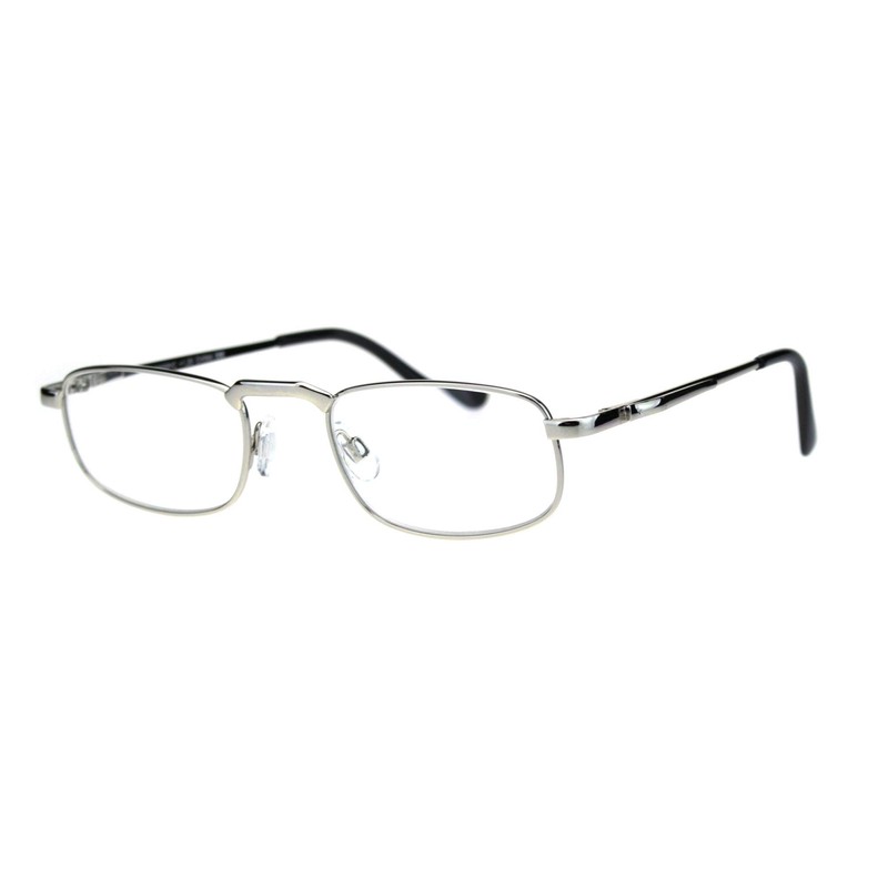 Mens Pocket Clip Arm Spring Hinge Rectangular Metal Rim Reading Glasses 1.75 Silver