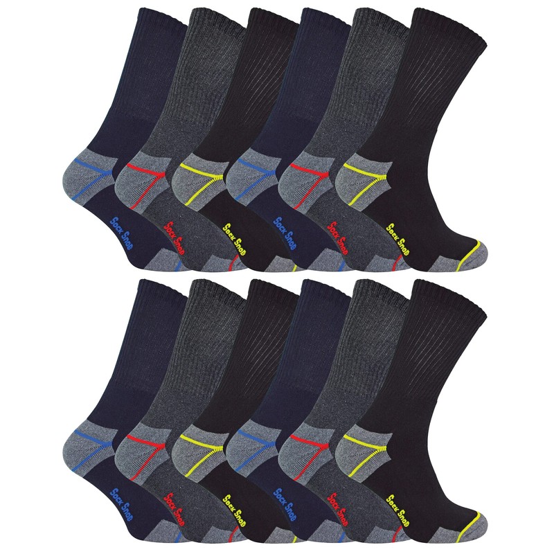 Mens Ultimate Heavy Duty Cushioned Cotton Work Socks for Steel Toe Boots (6-11 uk, 12 Pairs)