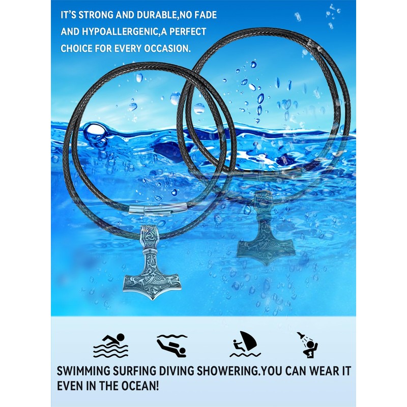 - 【Norse Mythology Jewelry】-- Capture attention with the glittering gold shine of the Mjolnir pendant, featuring eye-catching Mammen style carving on a braided leather chain.
