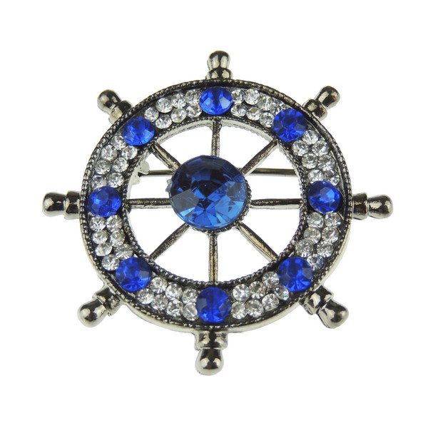 - Mens Womens Vintage Look Crystal Rhinestone Diamante Wedding Christmas Birthday Fashion Badge Scarf Dress Lapel Brooch Pin Small Gift Boxed Sail Boat Wheel Naval Maritime Boat Lover Wheel Blue