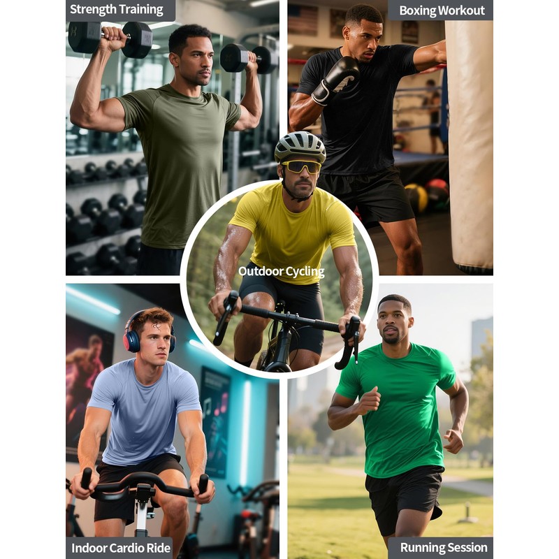 - Athletic fitted Style with flexible stretch: Contoured to enhance your build without being restrictive. Micro stretch across the body allows easy movement during lifting, rowing, circuit drills, and daily wear.
