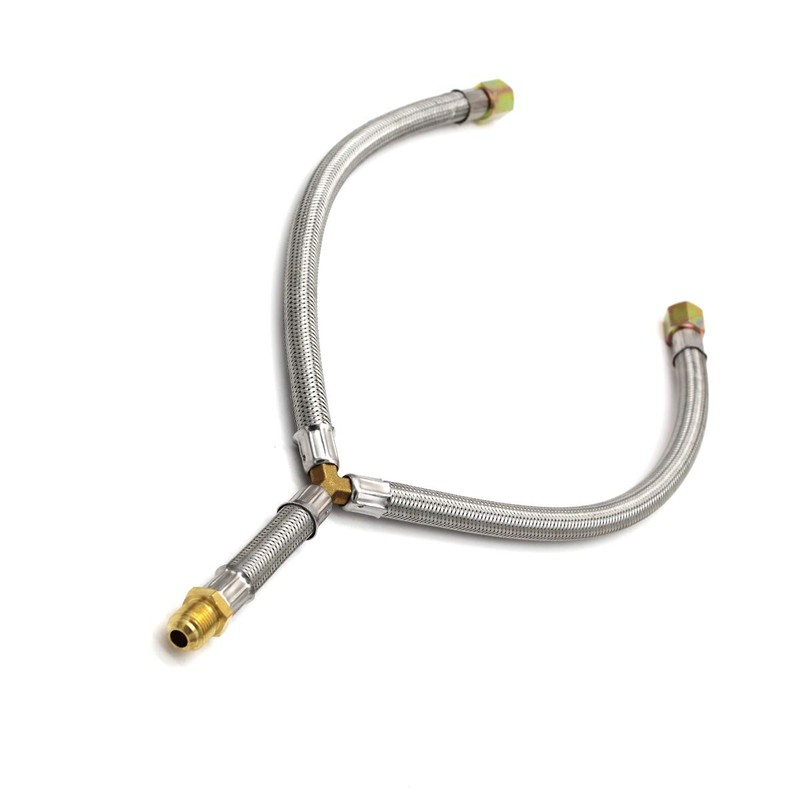 MENSI Propane Grill Y-Splitter Extensión Adaptador de manguera trenzada Longitud 15 pulgadas con 3/8 pulgadas conexión de brida