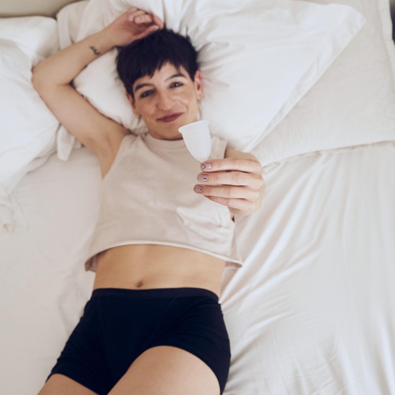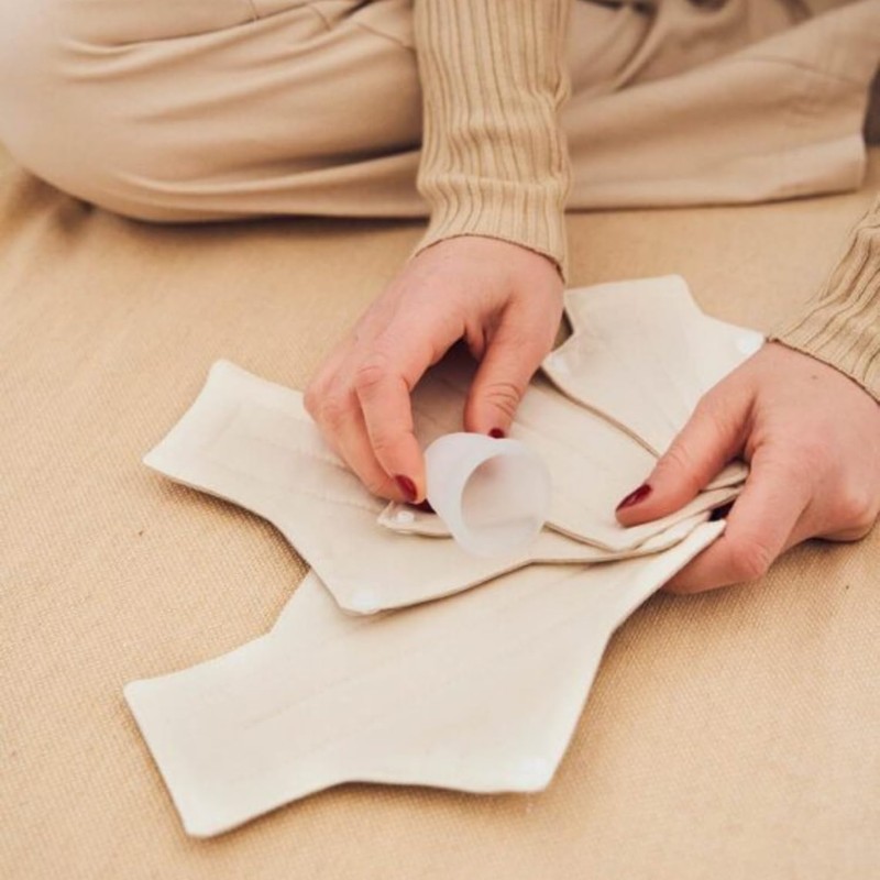 Menstruations-Pack: Menstruationstasse + wiederverwendbare Stofflippenschutz + wasserdichte Kosmetiktasche (Größe 0)