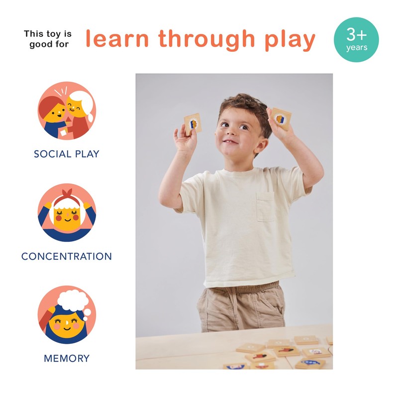 - GAME FOR DEVELOPMENT - Memory Game will enhance children’s memory skills by requiring them to remember the locations of matching pairs, improving concentration and cognitive abilities. The game also fosters visual recognition as children identify and match familiar objects, promoting learning through play in a fun and engaging way. It also helps develop social skills like turn-taking.
