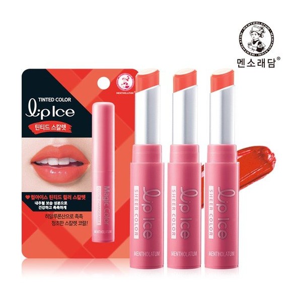 Mentholatum Lip Ice Tinted Color Scarlet 2g x3 / 멘소래담 립아이스 틴티드 컬러 스칼렛 2g x3개
