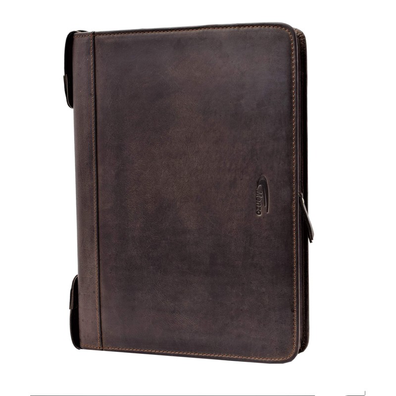 MENZO Leather Writing Case, Document Folder, Genuine Buffalo Leather Folder, Writing Case, Business Folder, Messenger Bag, Folder for Ring Inserts, Conference Folder, Leather Folder, Brown, Writing