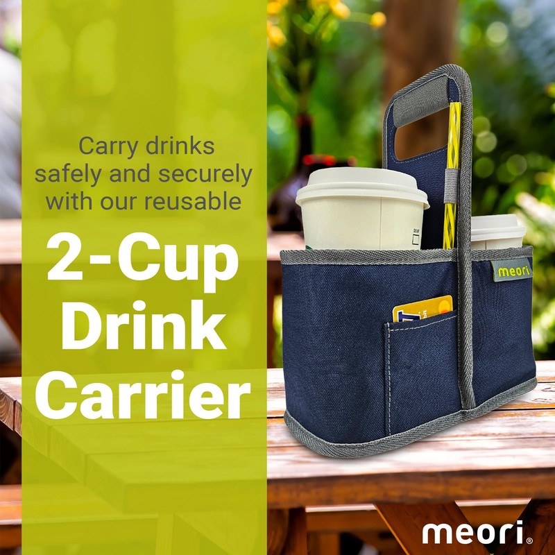 meori Reusable Drink Carrier 2 Cup, Take Out Cup Carrier, Collapsible, Coffee Carrier with Handle, Wine, Cocktails, Portable Drink Caddy