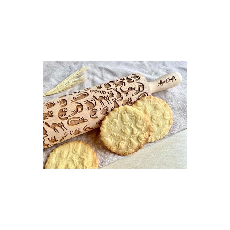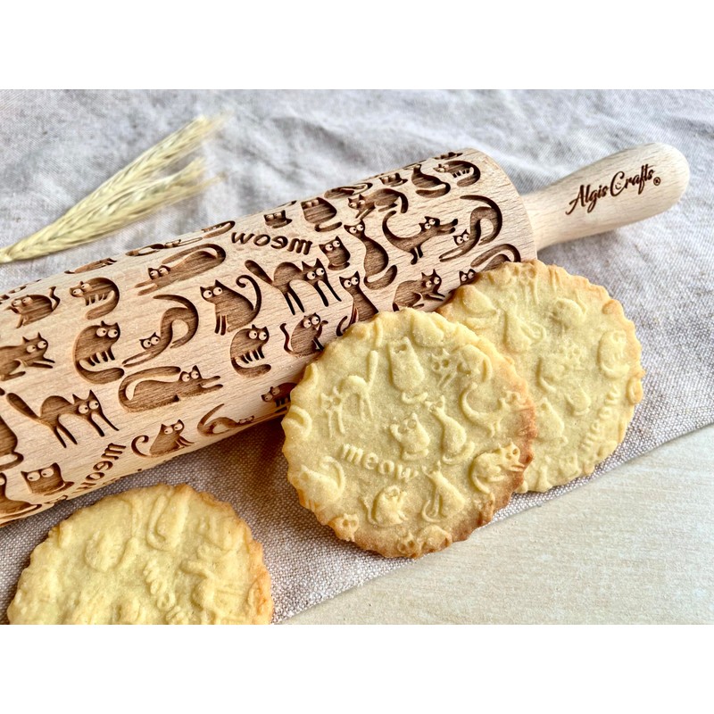 MEOW CAT Rolling Pin for Homemade Pastry Embossing Rolling Pin Gift for Cat Lovers by Master Algis Crafts