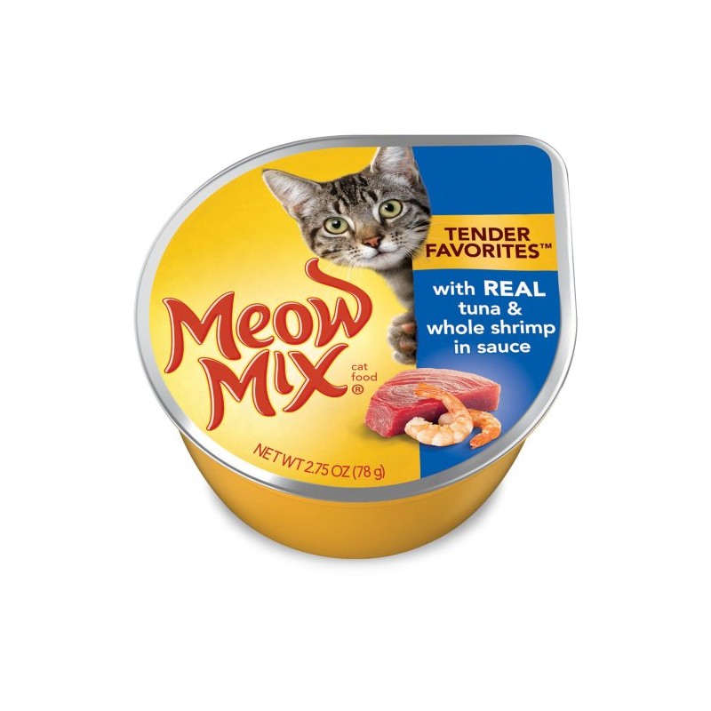 Meow Mix Tender Favorites Real Tuna & Whole Shrimp In Sauce Wet Cat Food, 2.75 Oz. Cups (Pack Of 24)