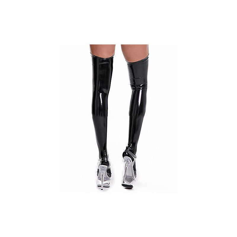 MEOWCOS.COM 2 Pairs Knee High to Thigh High Socks - Black Shiny PU Leather Over Knee Stockings