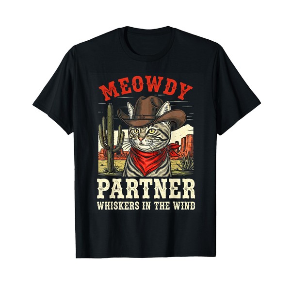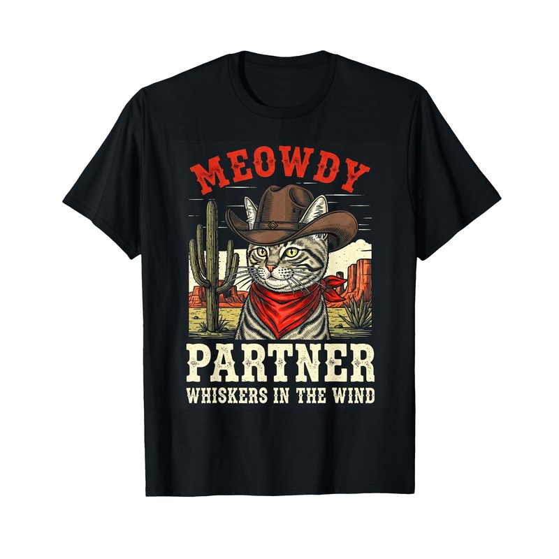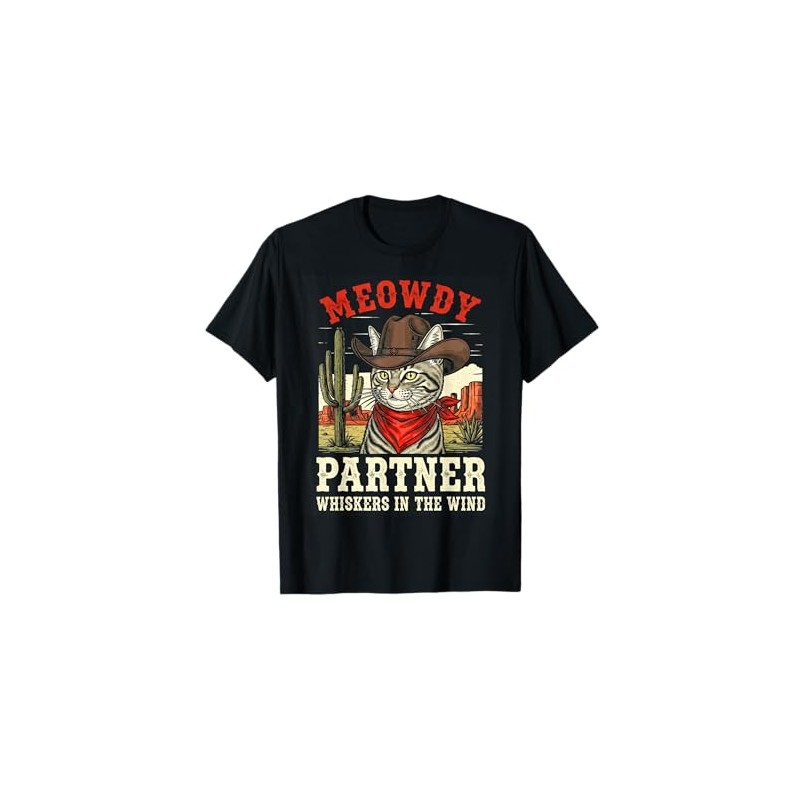 • Perfect for cat lovers and cowboy enthusiasts, this "Meowdy Partner Cowboy Cat Vintage" T-shirt features a funny meowdy cat meme in a colorful design. Great for country or western movie nights, it’s ideal for pet owners who adore kitties.