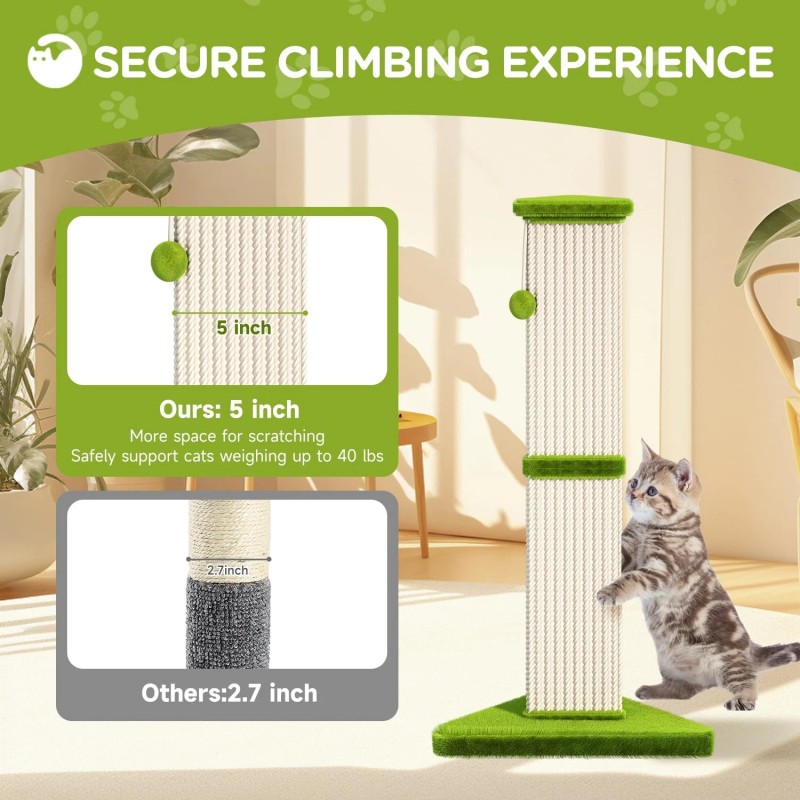 5 inch large diameter: Our Cat Scratch Post for Indoor Cats has a 5 - inch - wide pillar diameter, offering a larger and more satisfying scratching area for your cats.