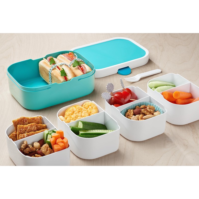 - VIELFALTIGES & GESUNDES MITTAGESSEN: Mit dem herausnehmbaren Bento-Einsatz bietet die Lunchbox unbegrenzte Möglichkeiten für Pausensnacks - Sandwiches, Obst, Käsewürfel, Muffins oder Wraps