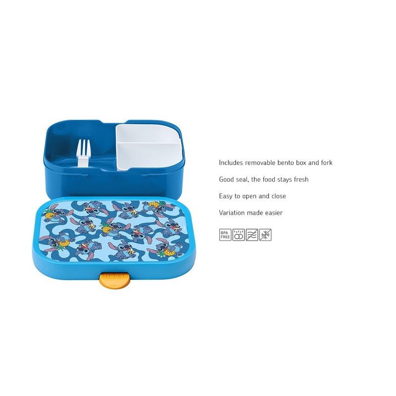 Mepal - Lunch Box Campus - Bento Lunch Box For Children - Lunch Box With Bento Compartment & Fork - Lunch Box With Clip Closure - BPA-free & Dishwasher Safe - 750 ml - Stitch