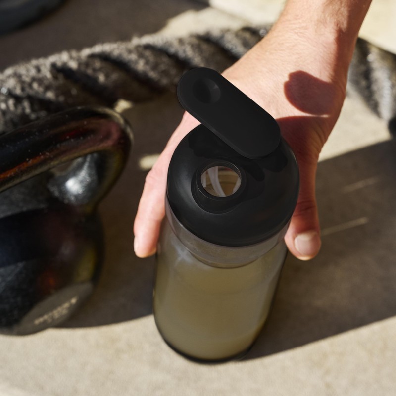 The shaker bottle is the optimal partner for making lump-free protein shakes and smoothies. The built-in mixer and measurement markings help you mix your favorite drink smoothly. Whether you're on the go or at the gym, this leakproof bottle keeps your drink within reach. The convenient cap slides open easily for effortless drinking. And with a detachable bottom, cleaning is quick and simple.