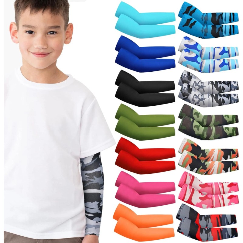 Mepase 14 Pairs Arm Sleeves for Kids UV Sun Protection 8-10 Age, Novel Color