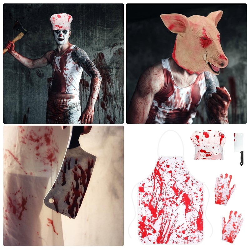 - Horror Design: the costume is designed with details, which can chill down the spines of people who sees it; Whether you're participating in a Halloween haunted house, party spoofs, or just looking to surprise your friends, the butcher costume will make an impact