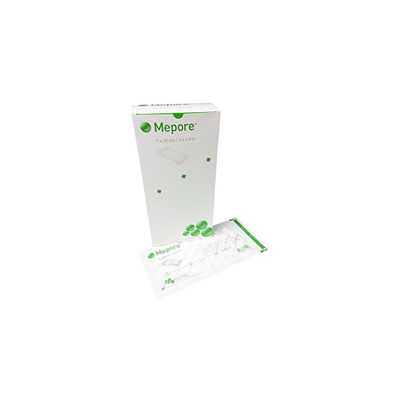 Product DescriptionAreas of use Mepore can be used in a wide variety of wounds which have low to moderate exudate levels. These include surgical wounds, cuts and grazes. How Mepore works The porous structure of the Sontara* nonwoven fabric ensures air and water vapour permeability. The fabric is stretchable, conforms well to body contours and allows body movements when in place. The fabric is non-absorbent and provides a barrier for blood and fluid strike-through. The polyacrylate adhesive has been designed to be gentle to the skin but at the same time provide secure fixation. The wound pad can absorb moderate amounts of wound fluids and the low-adherent surface reduces the risk of adherence to the wound. The easy-to-remove protection foil permits sterile application, as well as simplifying dressing application. Design Mepore is made of an elastic, non-absorbent nonwoven coated with a skin- friendly polyacrylate adhesive. The absorbent wound pad has a low adherent polyolefin coating to prevent trauma during dressing changes. The dressing area is protected with a release liner."DirectionsClean the wound area, apply the dressing with the adhesive side to the skin, ensuring gentle but secure fixation, and replace the dressing when it becomes saturated or no longer adheres to the skin.
