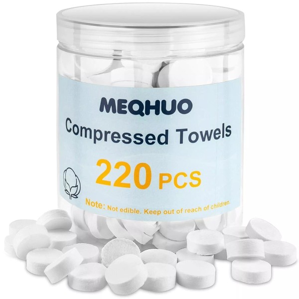 MEQHUO 220 Pcs Compressed Towels, Portable Compressed Towel Tablets, Mini Compressed