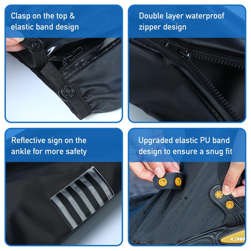 - 【Comfortable and easy to slip-on and remove】Waterproof full-length zipper on the side makes it very easy to slip-on and remove. The elastic strap at the top prevents the shoe covers from slipping off while walking.