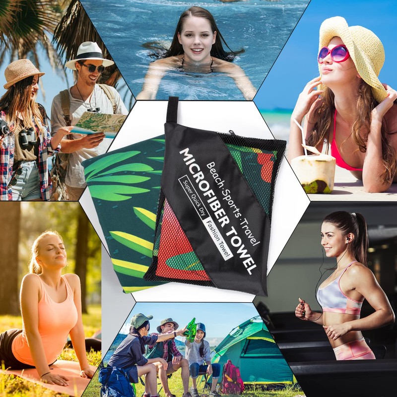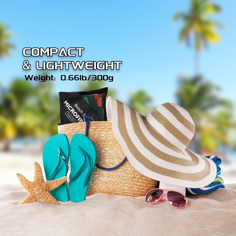- WIDELY USED : Weight: 0.66lb/300g. Our large microfiber beach towel is thin, lightweight and easy to pack and carry with a included mesh bag, it's non-bulky for easy travel. It's perfect to use as a beach blanket, beach mat, swimming towel, pool towel, bath towel, camping towel or workout towel. The beach towel will keep you dry, sand-free and cozy this summer, whether you’re at the beach, the pool or on a picnic.