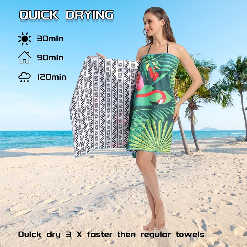 - 🐚PERFECT GIFT FOR VACATION : Our microfiber beach towel is the perfect gift idea for your friends, lover, and family on holiday, anniversary, honeymoon, home warming, Christmas or any special occasion. It's truly an exceptional beach and travel towel for its' stylish, oversized, sand free, soft, lightweight, absorbs water quickly, dries quickly, and keeps warm.
