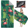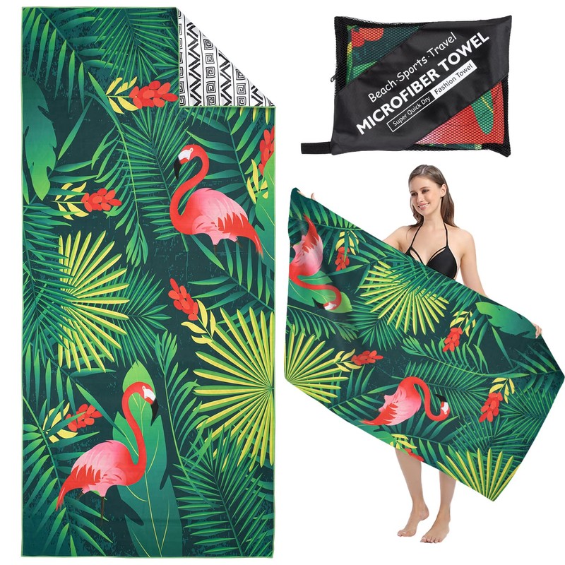 MEQUER Microfibre Beach Towel,71"x32" Large Beach Towels For Adults,Lightweight Quick Dry Sand Free Compact Beach towel Swimming Towel for Travel, Beach, Pool, Camping (Flamingo Green)